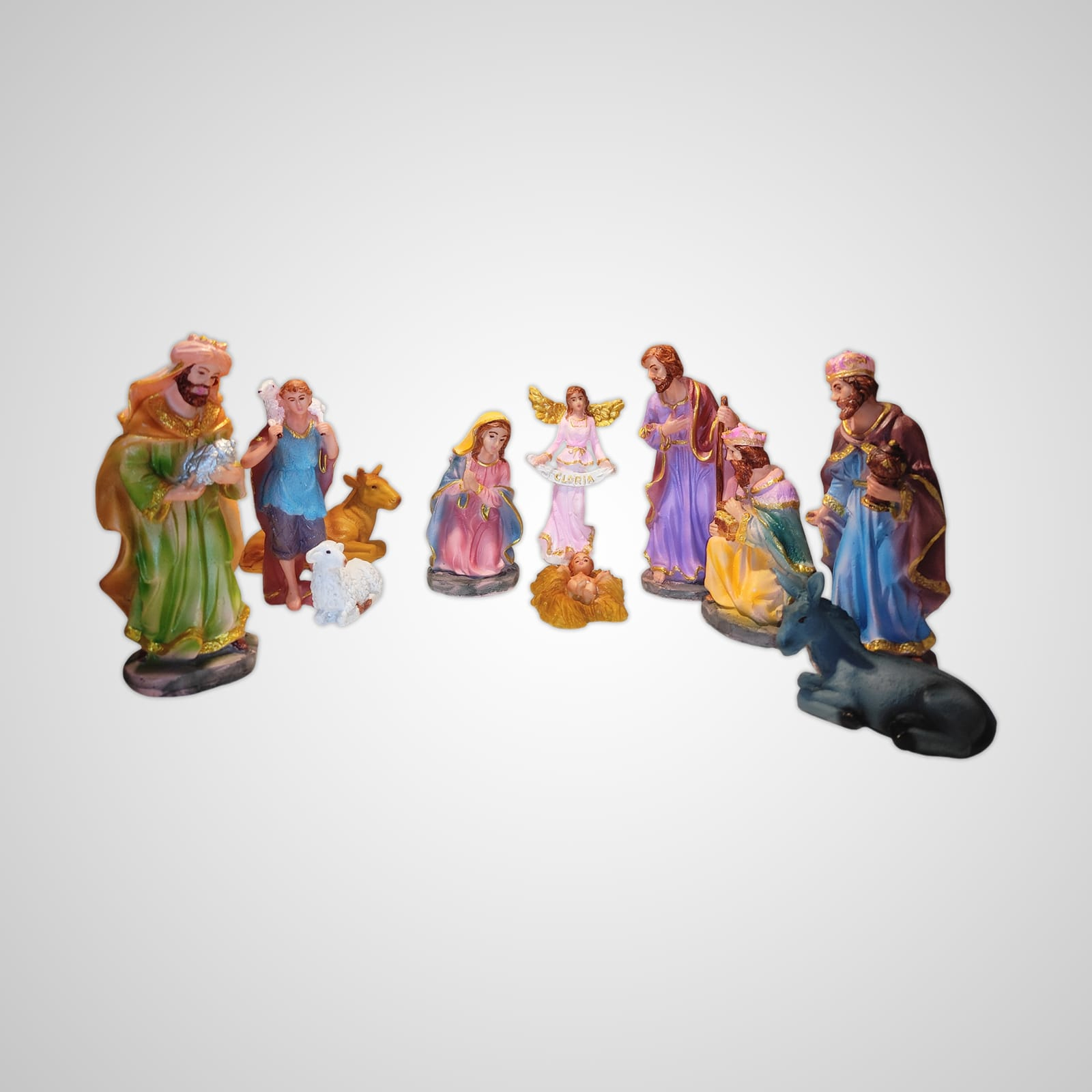 Introducing our exquisite Poly Marble Cribset, a harmonious ensemble depicting the nativity scene. Crafted with precision, this set includes Baby Jesus, Angel, St. Joseph, Mother Mary, Good Shepherd, 3 Wise Men, Donkey, Cow, Sheep, and Camel, each intricately detailed with clear facial features. The multicolored figures add vibrancy to this remarkable collection, creating a visually captivating representation. Made from durable poly marble, this Cribset is not just a decoration but a timeless piece that beautifully captures the essence of the nativity narrative. Elevate your festive decor with this symbol of serenity and grace.